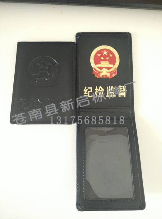 真皮工作证制作,工作证定做,纪检监察工作证皮套制作,本公司是一家专业制作证件皮套胸卡皮套厂家,公司拥有自己研发,设计,打样,制作团队,公司皮套畅销全国各地,本公司是交通部定点制作交通行政执法证皮套厂家之一,纪检监察皮套是采用国标牛皮材料缝制,正面采用电雕模具烫压,里面是金属徽章标志,另一面是一个透明证件卡袋,每一个皮套都有一个塑料袋子包装,皮套做工精细,价格实惠,联系电话13175685818,15057389460.